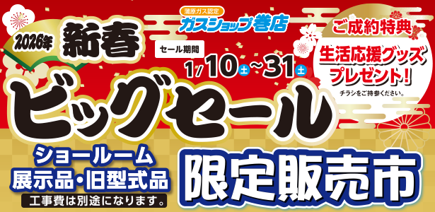 ガスショップ巻店は、ガス機器の販売・取付・修理、キッチン・バス・洗面所等のリフォームを行っております。 |